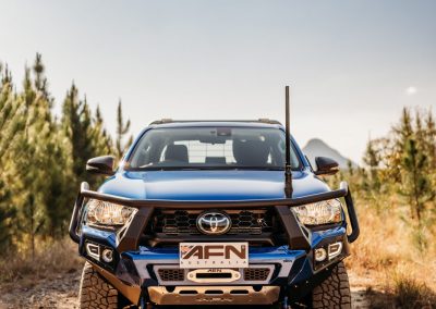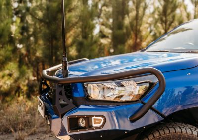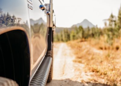 - Side Steps (steel tube design with raw aluminum checkered plate top – Hi-Lift Jack Points)
